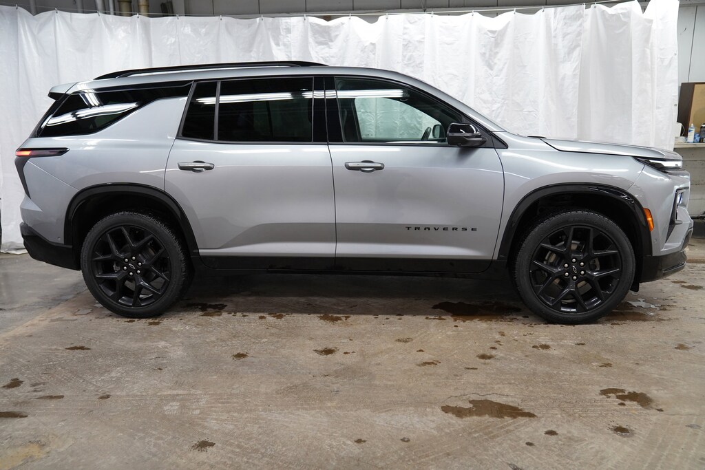 Silver 2025 Chevrolet Traverse RS AWD 8-Speed Automatic 2.5L DOHC Traverse RS, 4D Sport Utility, 2.5L DOHC, 8-Speed Automatic, AWD, Silver, Leather.