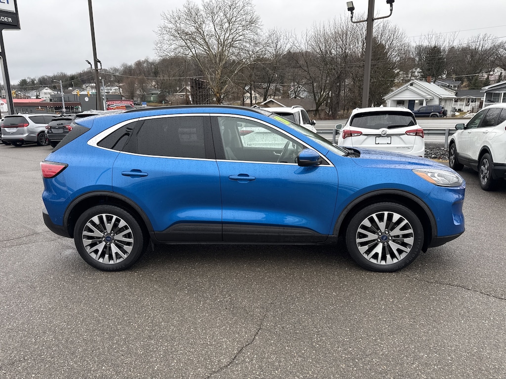 Our 2020 Ford Escape Hybrid Titanium AWD stands proud with upscale amenities, efficient performance, and a premium Blue Metallic design! Motivated by a 2.5 Liter 4 Cylinder and an Electric Motor delivering a combined 200hp to an electronically controlled CVT. Enjoy confident acceleration in this All Wheel Drive SUV with nimble handling and score nearly 43mpg in the city, too. Set your course for adventure and arrive in style with LED lighting, fog lamps, heated power mirrors, panoramic sunroof, dual chrome exhaust outlets, alloy wheels, and a hands-free tailgate for impressive convenience.A smart layout with plenty of storage is a highlight in our Hybrid Titanium cabin that further meets your needs with leather heated power front seats, a heated premium-wrapped steering wheel, dual-zone automatic climate control, remote start, and eye-friendly technology. You have a 12.3-inch digital instrument panel and an 8-inch touchscreen with full-color navigation, Android Auto, Apple CarPlay, Bluetooth, wireless charging, WiFi compatibility, and a Bang & Olufsen sound system.Confidence-inspiring safety technology includes Ford Co-Pilot360 features such as a backup camera, automatic braking, a blind-spot monitor, lane-keeping assistance, rear parking sensors, adaptive cruise control, and even automatic parking assistance. It's time to get away from it all in our great Escape Hybrid Titanium! Save this Page and Call for Availability. We Know You Will Enjoy Your Test Drive Towards Ownership!