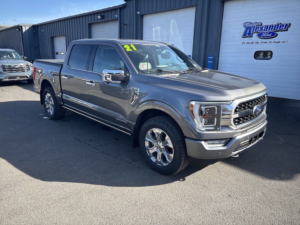 Gray 2021 Ford F-150 Platinum 4WD 10-Speed Automatic 3.5L PowerBoost Full-Hybrid V6 3.5L PowerBoost Full-Hybrid V6, 4WD.