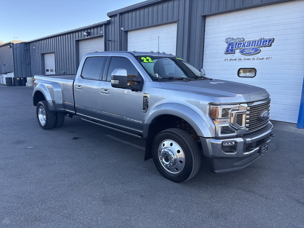 Iconic Silver Metallic 2022 Ford F-450SD Lariat DRW 4WD 10-Speed Automatic Power Stroke 6.7L V8 DI 32V OHV Turbodiesel 4WD.