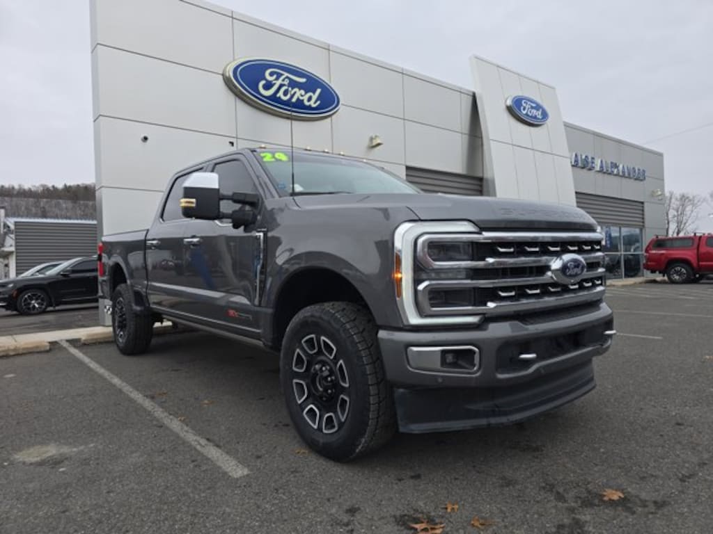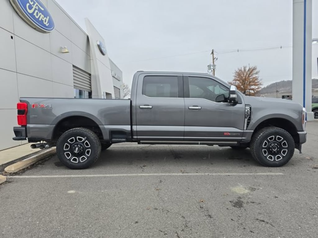 Carbonized Gray Metallic 2024 Ford F-350SD Platinum 4WD 10-Speed Automatic 6.7L High Output Power Stroke V8 Diesel Fresh Oil Change, 4WD, 5th Wheel/Gooseneck Hitch Prep Package, FX4 Off-Road Package, Hill Descent Control, Navigation system: Connected Navigation (includes complimentary 1-year trial), Off-Road Specifically Tuned Shock Absorbers, Order Code 713A, Snow Plow Prep Package, Twin Panel Power Moonroof, Unique FX4 Off-Road Box Decal.